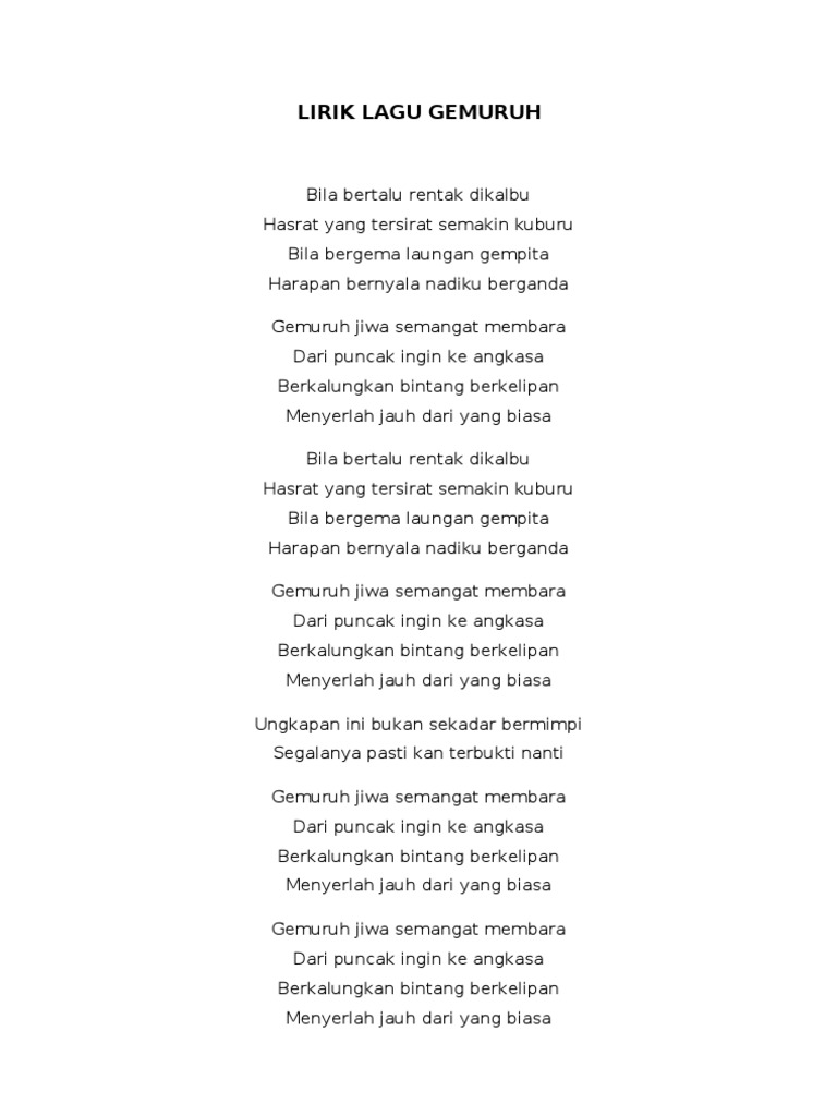 Lirik Lagu Gemuruh Docx Lirik Lagu Gemuruh Faizal Tahir Bila Bertalu Rentak Dikalbu Hasrat Yang Tersirat Semakin Ku Buru Bila Bergema Laungan Course Hero